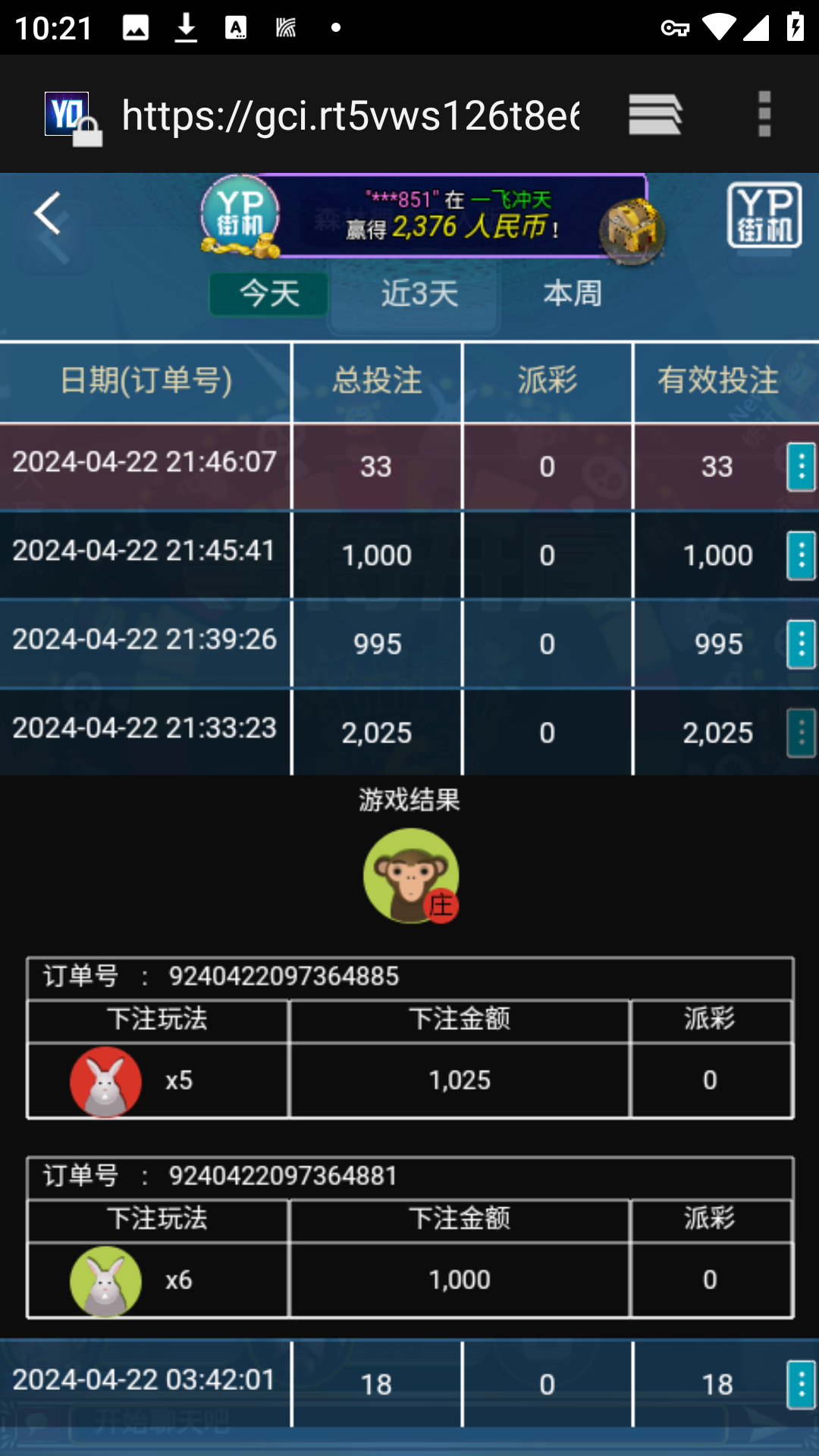 接上回100一拉,这个月发工资了,冲了3800,打了4万流水,提款5000,拒绝出款,要求罚10倍水,90一拉,直接死光,避雷990金沙