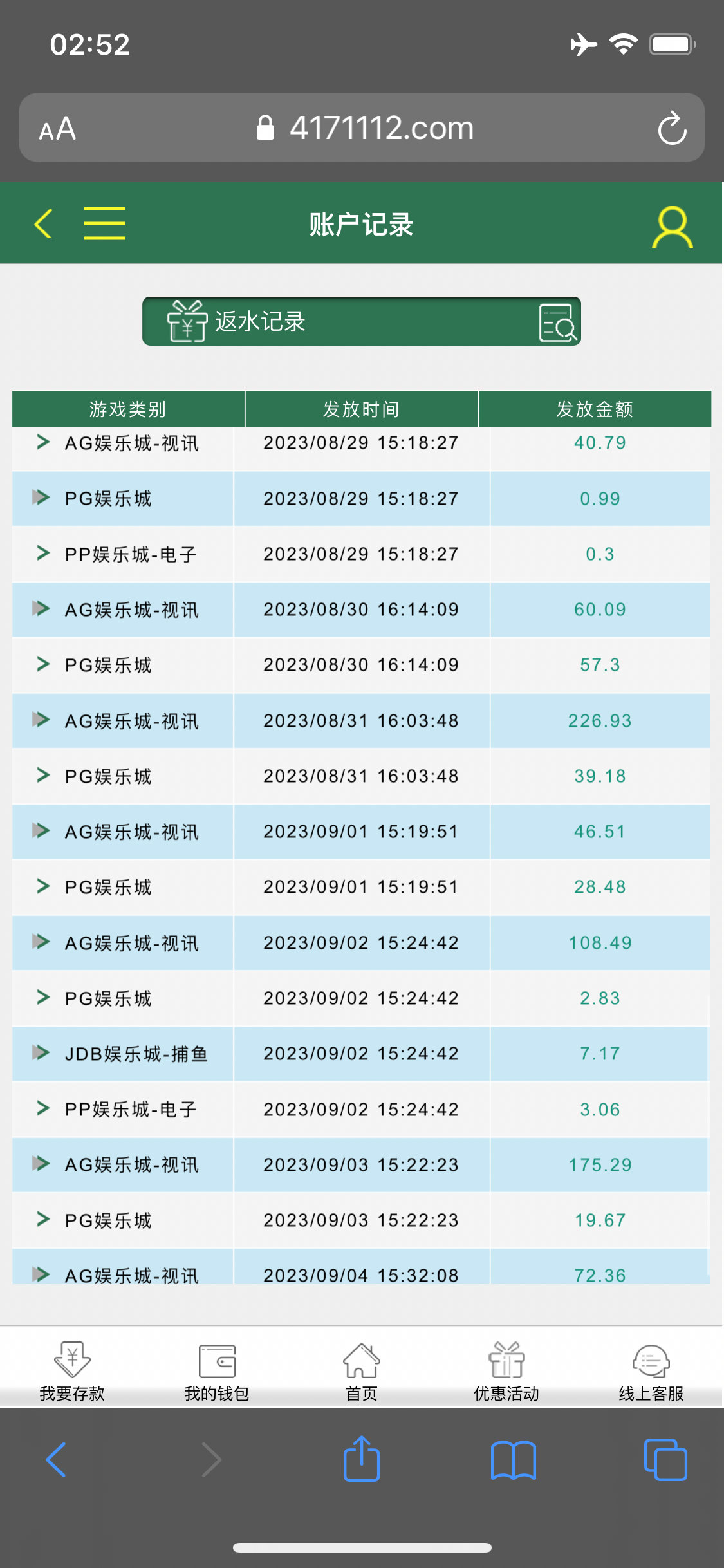 30本金玩电子上到四百提银行卡给我拒绝提现 想着不给提就算了 然后去梭哈Ag 玩到一千块 提到钱能钱包 到账了 之后就一直充提 玩Ag一直陆陆续续赢 然后提钱能钱包 又冲又提 最高上到2.1w 而且2.1w都全部到账钱能钱包了 反水撸了一千多 加上钱能钱包存取款那个活动 存取款彩金撸了一千多 总是感觉还能赢。上头两个小时全部挂完 一下清醒了  人心不足蛇吞象 狗庄不怕你赢 钱 就怕你不玩 输完了 睡得着了