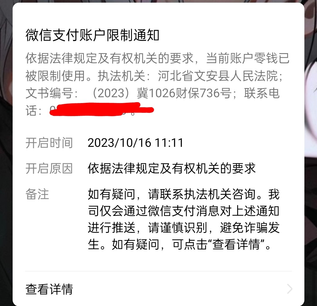 微信支付被司法冻结了,要不要打电话过去问清楚,怕被叔叔抓,有没有老哥有类似经验分享一下