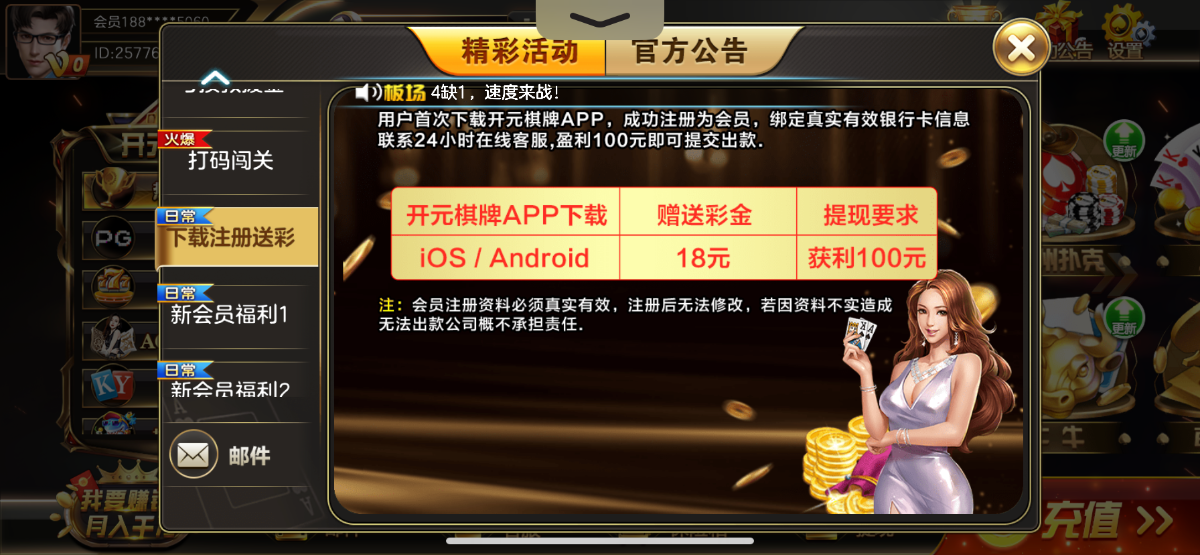下载APP注册绑卡,复制ID联系客服,碰18新人彩金,出款自测!