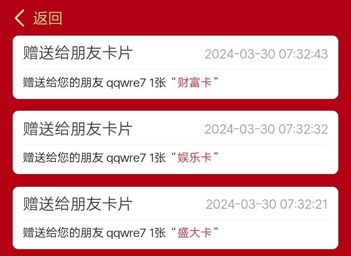 财富卡送6张