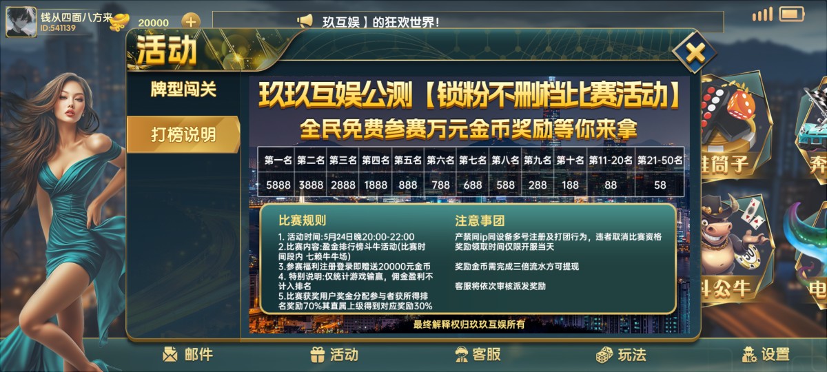 玖玖24号开启免费牛牛比赛,可以去白嫖一下,如果要填俱乐部就填564862