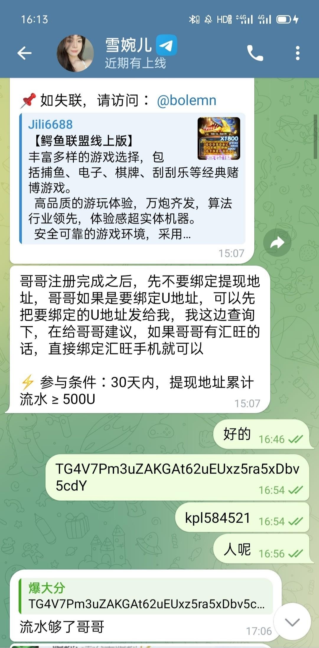 随便找个流水好的u地址给客服查,符合在绑自己的地址,我就是这样申请的!今天没名额可以第二天试试。