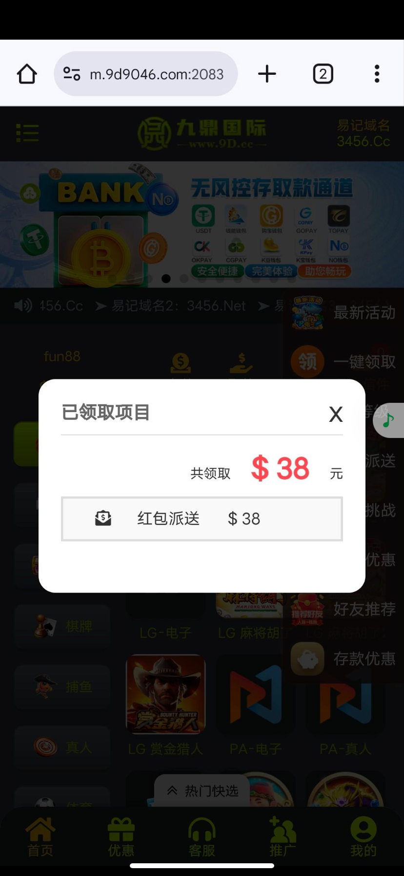 碰瓷电话彩金,有的话登录就弹出来了,没有无视,网址40081.cc
