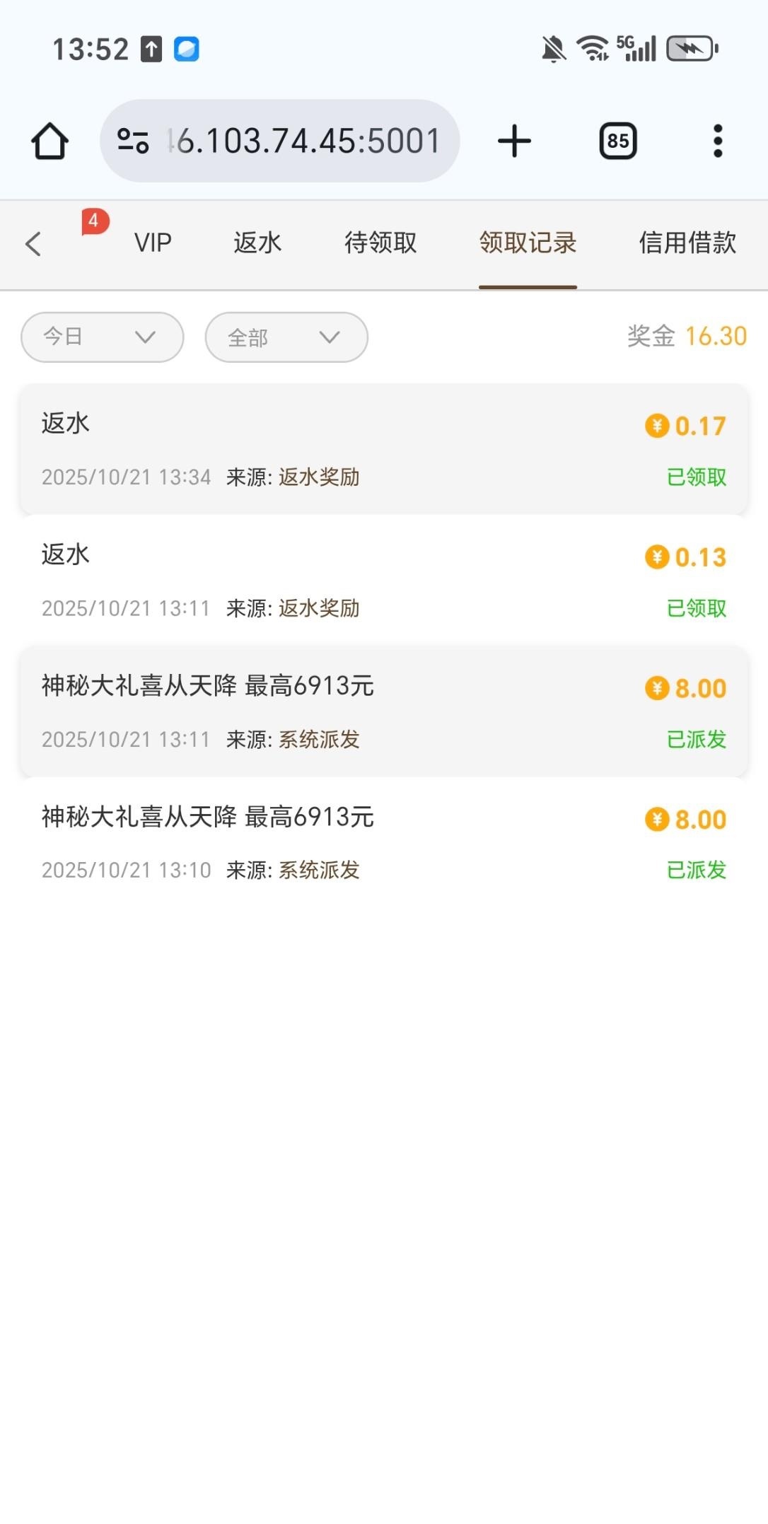 电话过来上去看有两个8块,不知道能不能出款