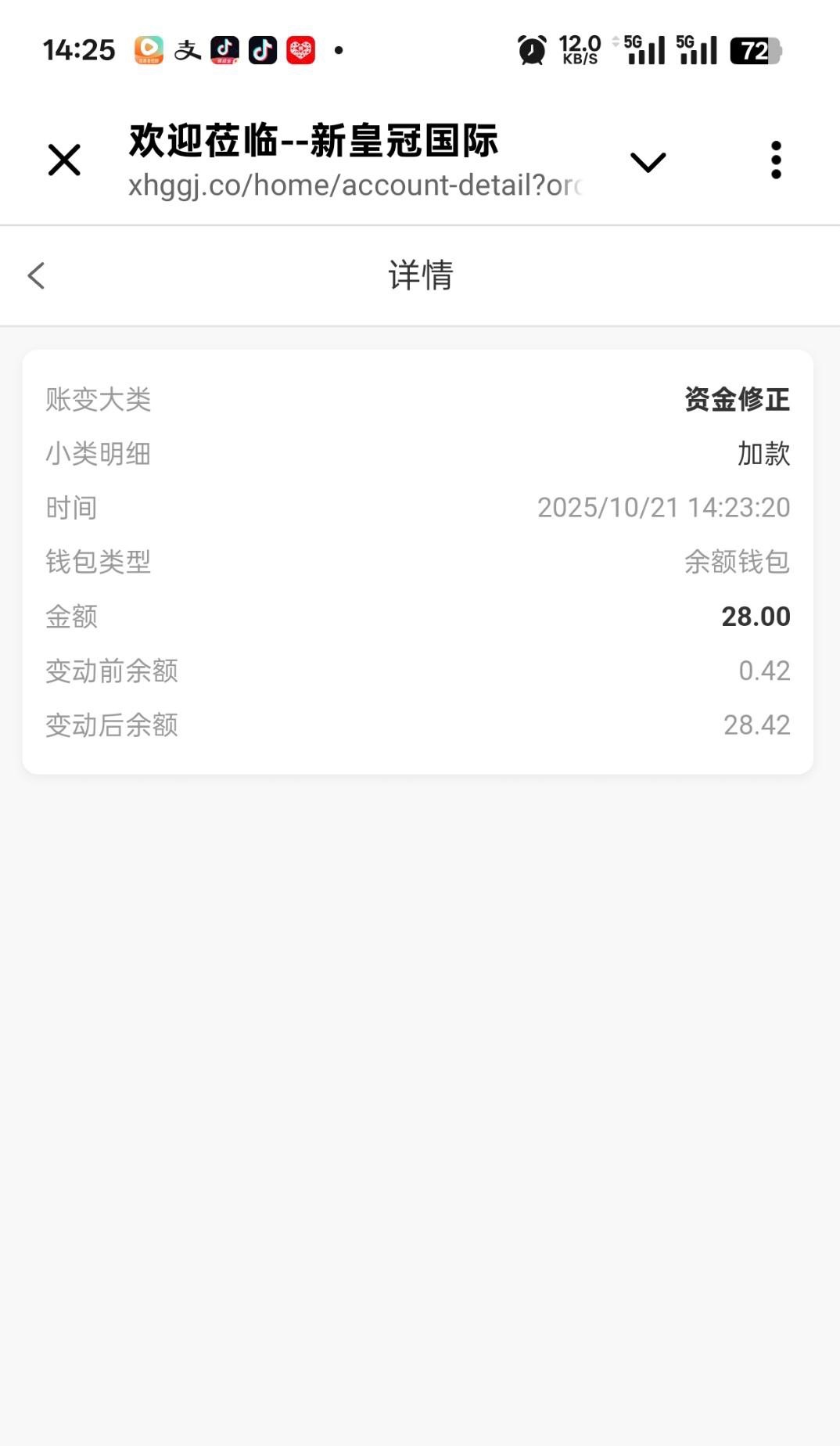 新皇冠0188.vip 在平台注册历史有过充值的老哥可联系飞机客服领取回归彩金,彩金随机,给我派送了28元彩金,飞机客服账号@XHGUU