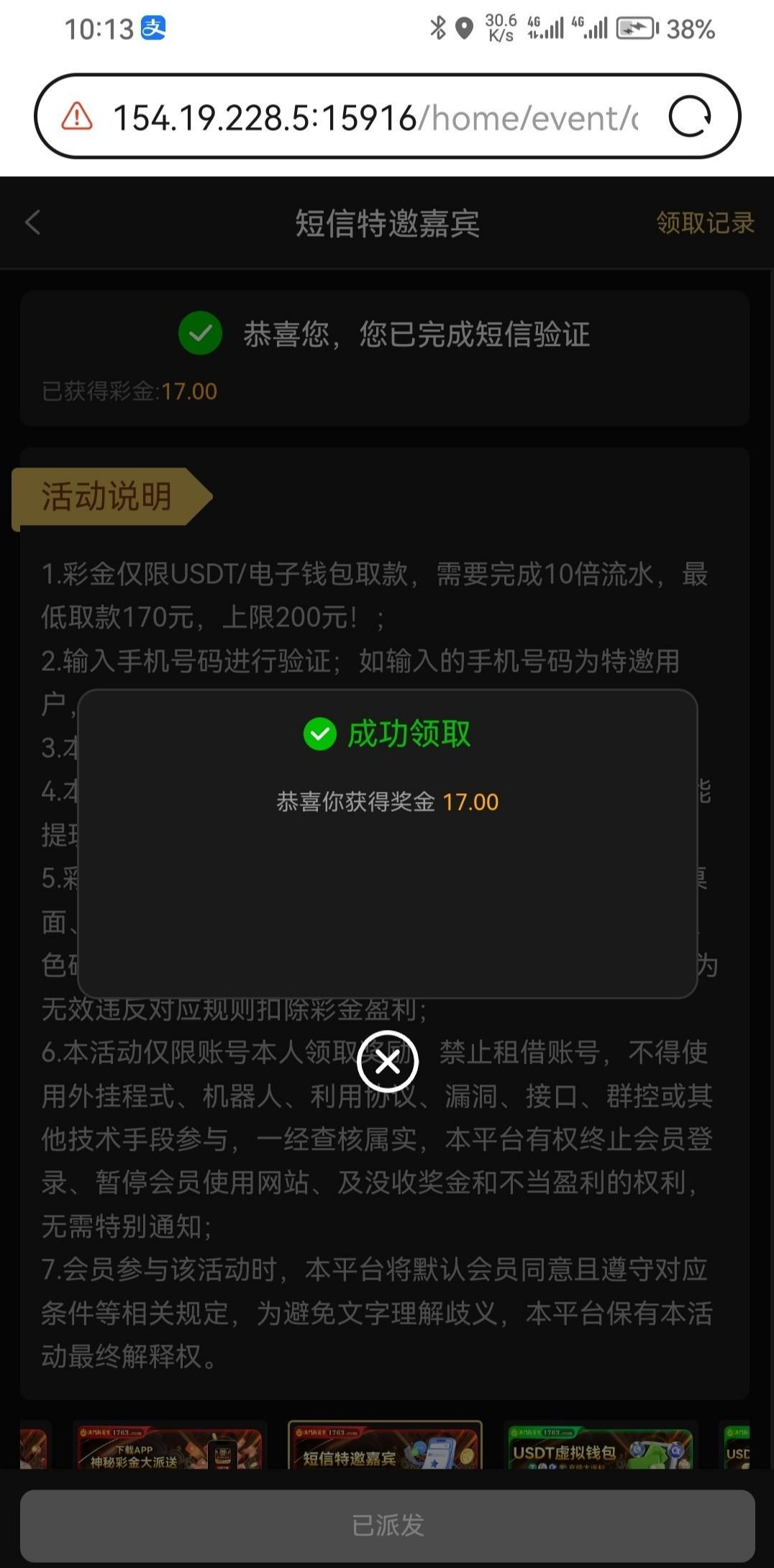网址1763.com 前面的号封优惠注册新的领到了 没打出来不知道多账号能不能出款 查特邀需要绑定收款方 觉得麻烦的就别去了