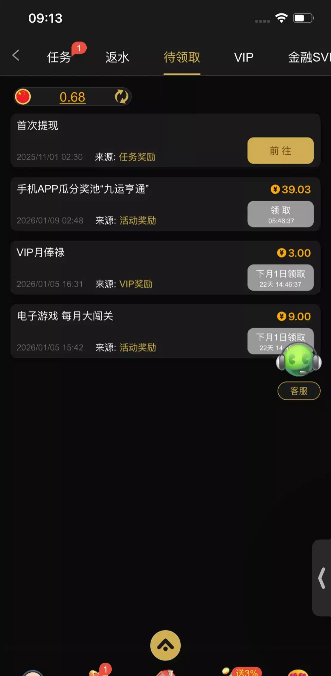 9号九运亨通彩金,充值过的去看看。链接 9911.com