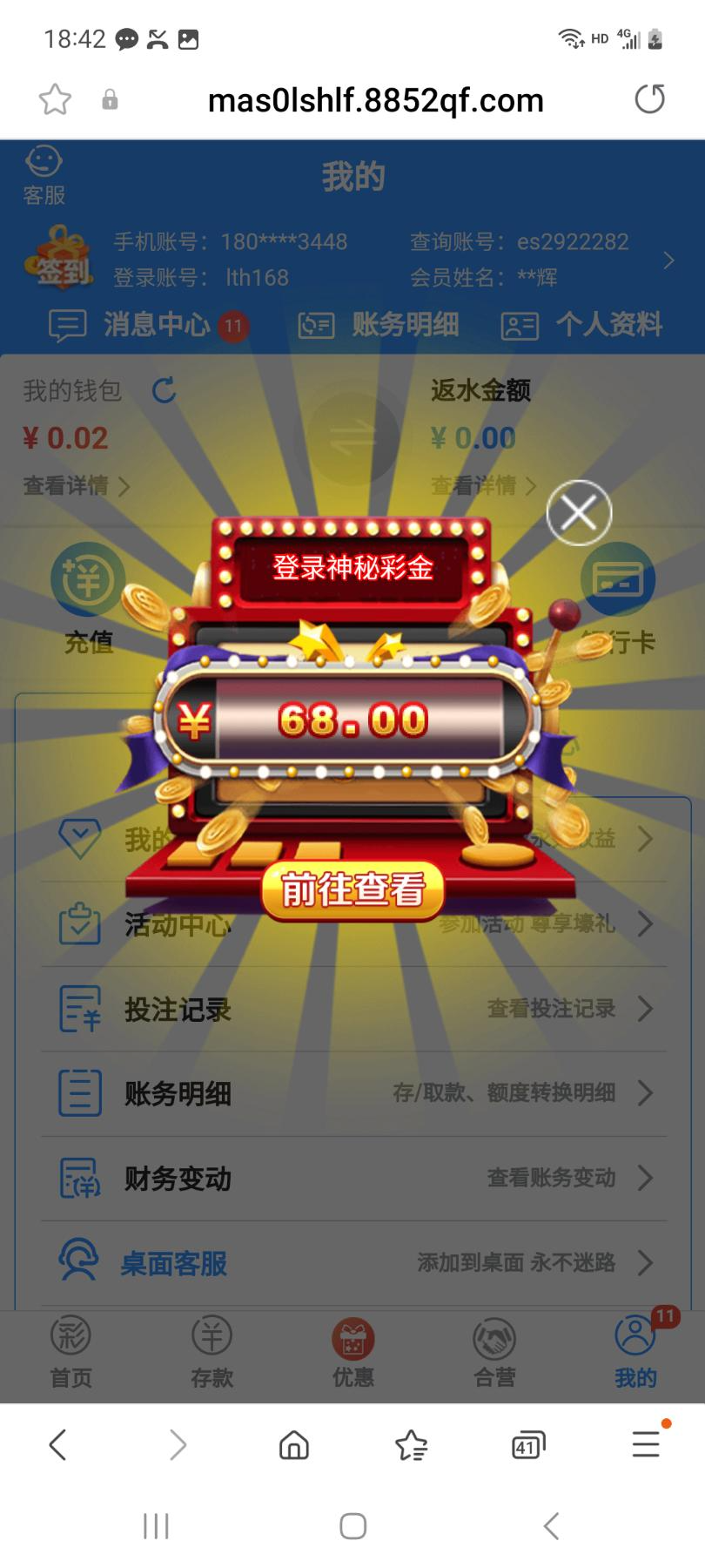 半个月没充值过了今天弹窗送68