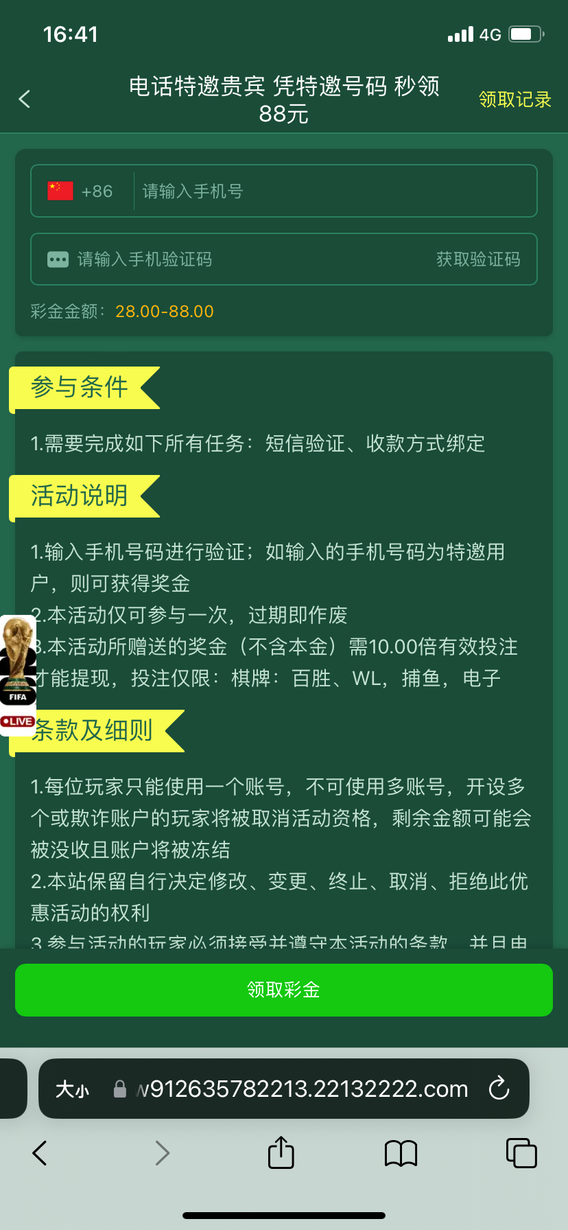 接到电话的,特邀送28,电话报的网址, 99100.vip
