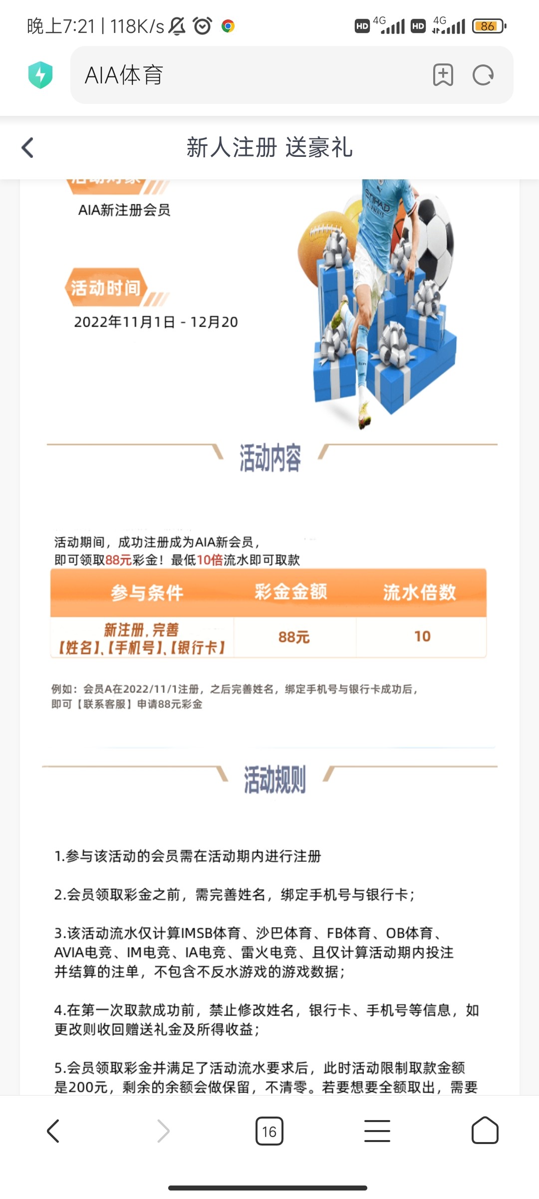 活动详情:注册绑卡手机号找在线客服申请88只能提现200 具体规则自测,白嫖切勿充值,宜黄速去 客服如果进不去就多试一下