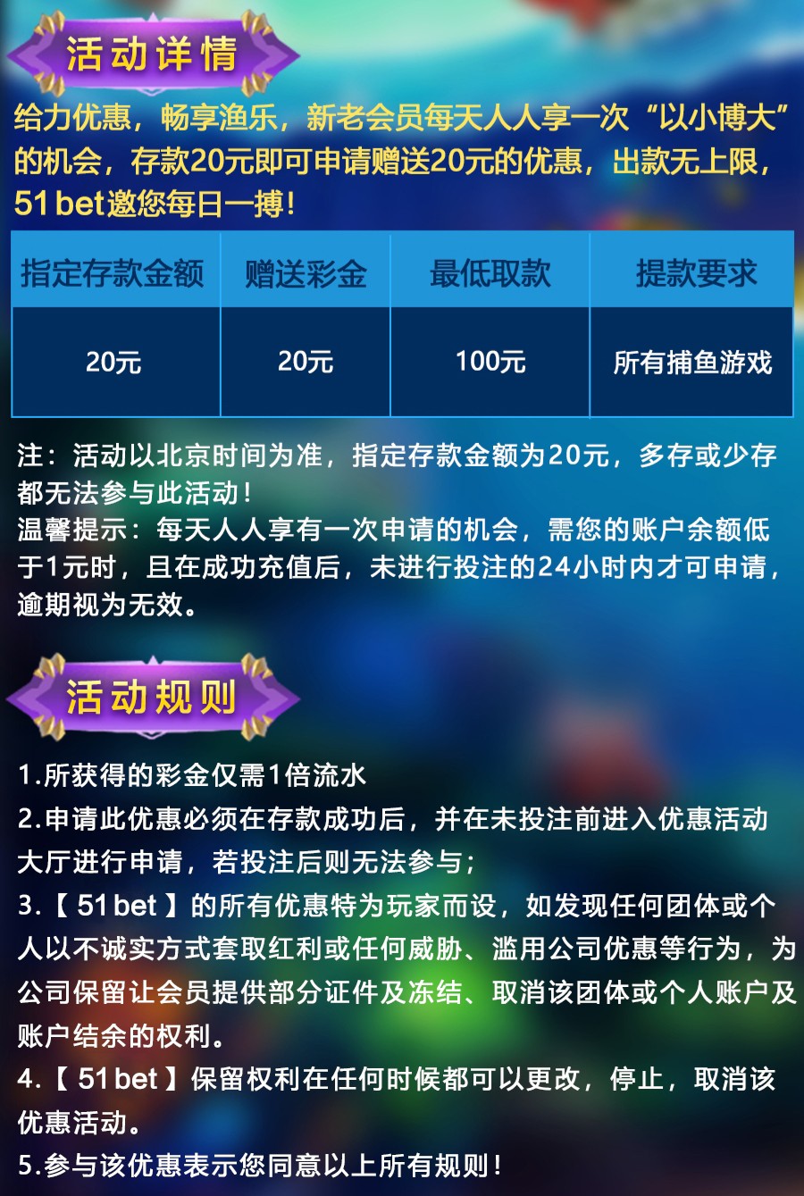 51棋牌每天以小博大20+20捕鱼