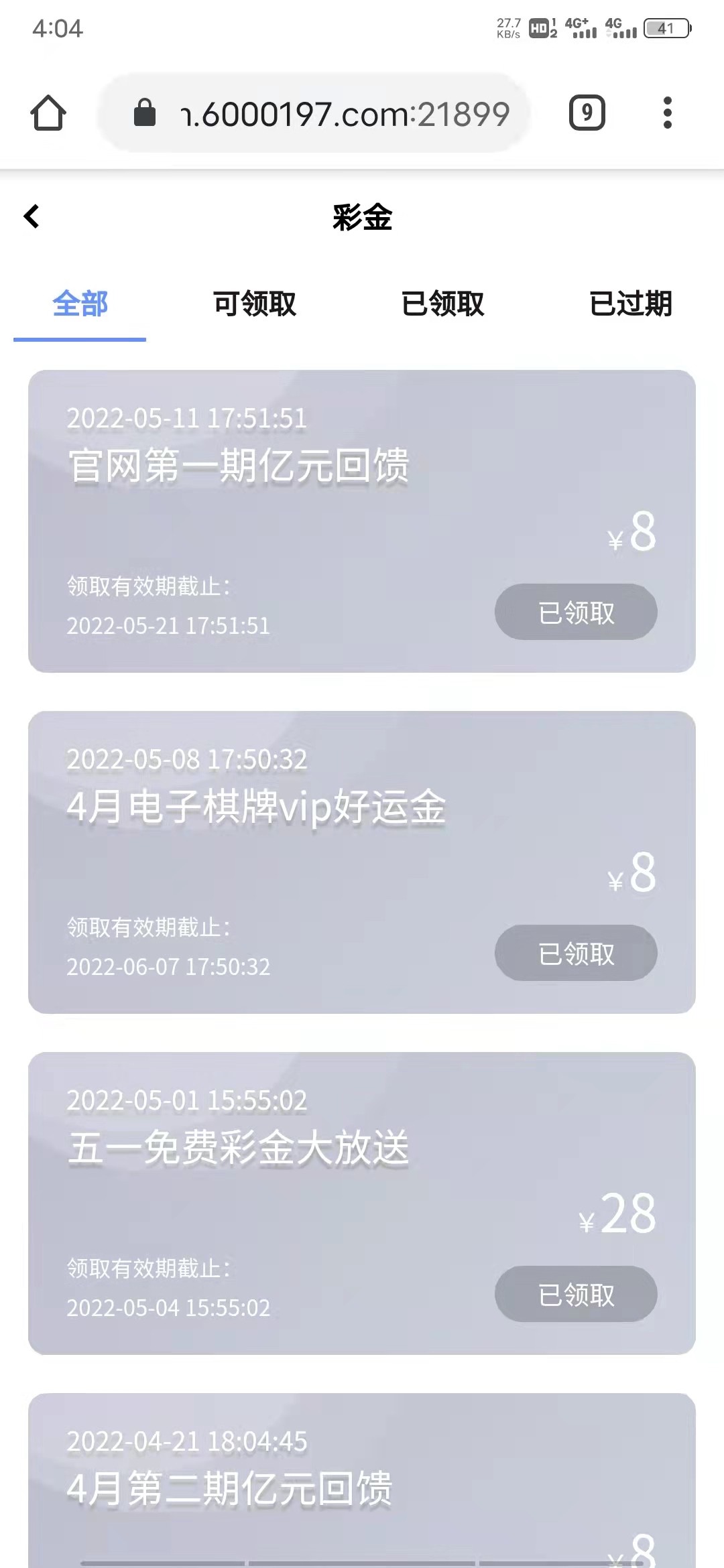 还好白嫖了五百  不敢提多只能一百两百的提  然后充一百进去说好送两百  结果只送了一个58一个46的彩金  还得分开领取的无语了