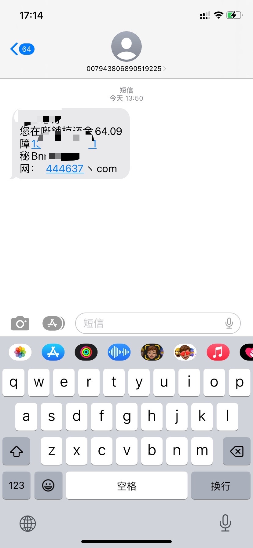 发短信来的 直接给了我手机号+密码 登录上去送了64 提现需要充值百分之20金额 能玩吗