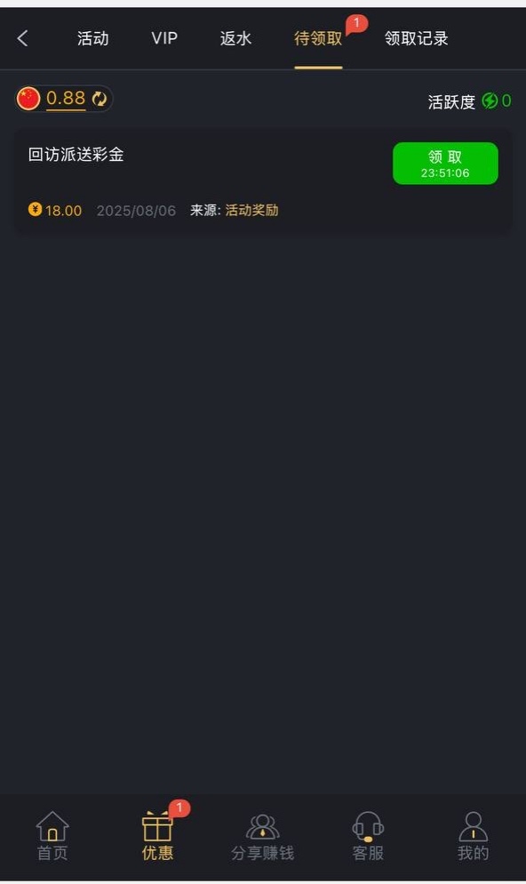 老用户有号登录查看有没有回访18彩金,有就有没有没有吧