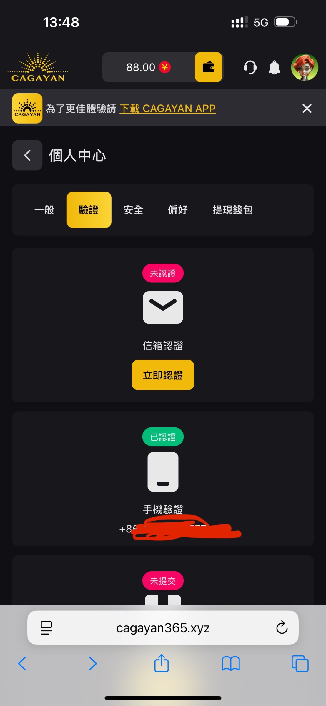卡卡电话彩金送88到188